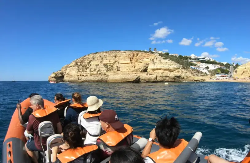 Outra atividade muito divertida e impressionante é visitar as famosas grutas de Benagil . Partindo de Lagos, o passeio de barco levará vocês por formações rochosas e praias.