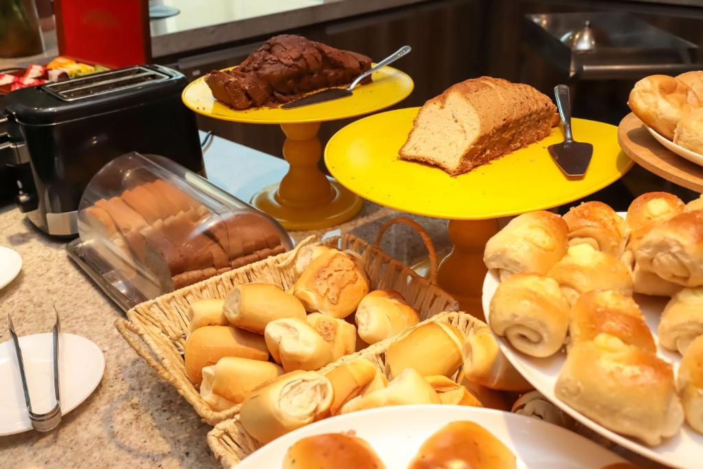 O buffet de café da manhã está incluso na diária e é bem variado, com pães, frios, frutas, geleias e bolos. As diárias começam em torno de R$ 345 e o hotel tem nota 8,1.