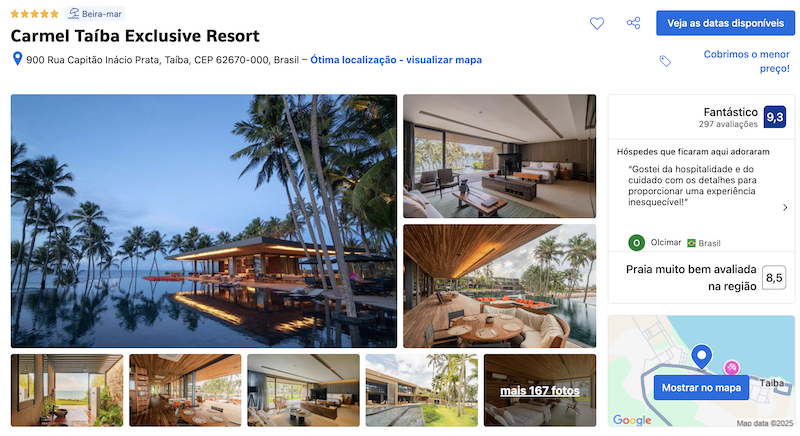 O Carmel Taíba Exclusive Resort fica localizado na Praia de Taíba, a 40 minutos de Fortaleza, e é um resort de luxo de 5 estrelas que se destaca por oferecer uma experiência sofisticada, tranquila e integrada à natureza.