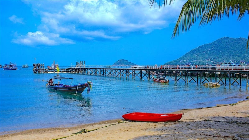 Depois, o ponto de chegada em Koh Tao é o píer de Mae Haad, que fica a sul de Sairee Beach mas a uma pequena distância de 8 min de carro. Uma vez lá, poderá pegar songhtaew, moto ou táxi até o seu hotel.