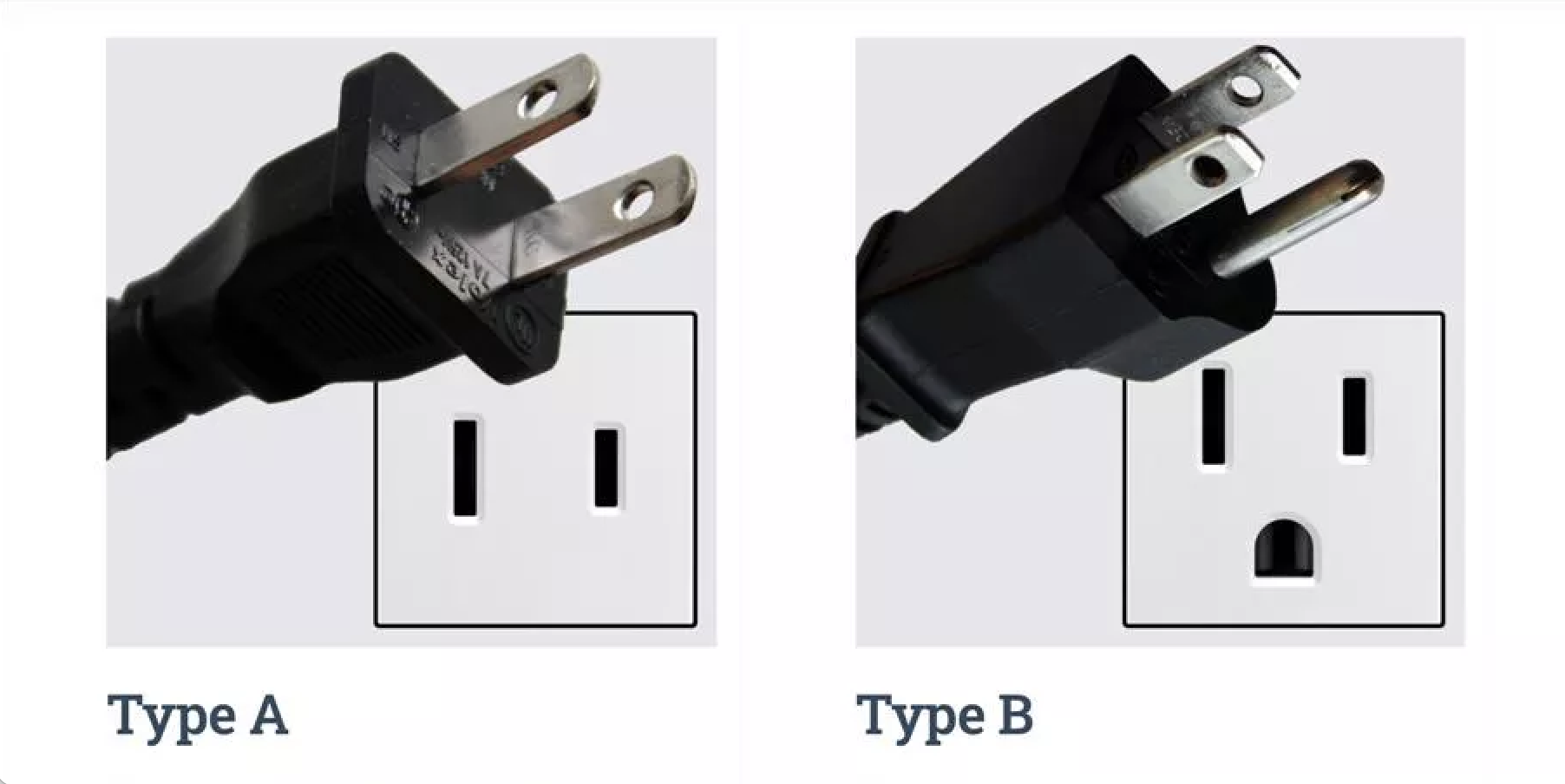 As tomadas mais comuns são dos tipos A e B (padrão americano, com pinos achatados), embora também existam alguns locais com padrão europeu (tipo C).
