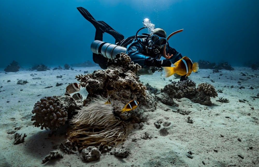 • Navegando mar a dentro, haverá uma parada em um ponto estratégico, onde você receberá o equipamento de mergulho (cilindros de oxigênio).
