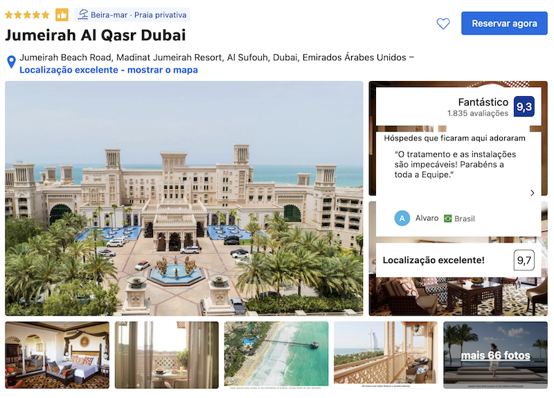 Em terceiro lugar da lista, o Jumeirah Al Qasr é um hotel de luxo inspirado nos palácios árabes, localizado no complexo Madinat Jumeirah. A decoração é lindíssima! No hotel há praia privativa, piscinas exuberantes, spa e transporte interno em barcos tradicionais pelos canais do resort. Um luxo! Além disso, conta com diversos restaurantes e vistas privilegiadas para o Burj Al Arab.