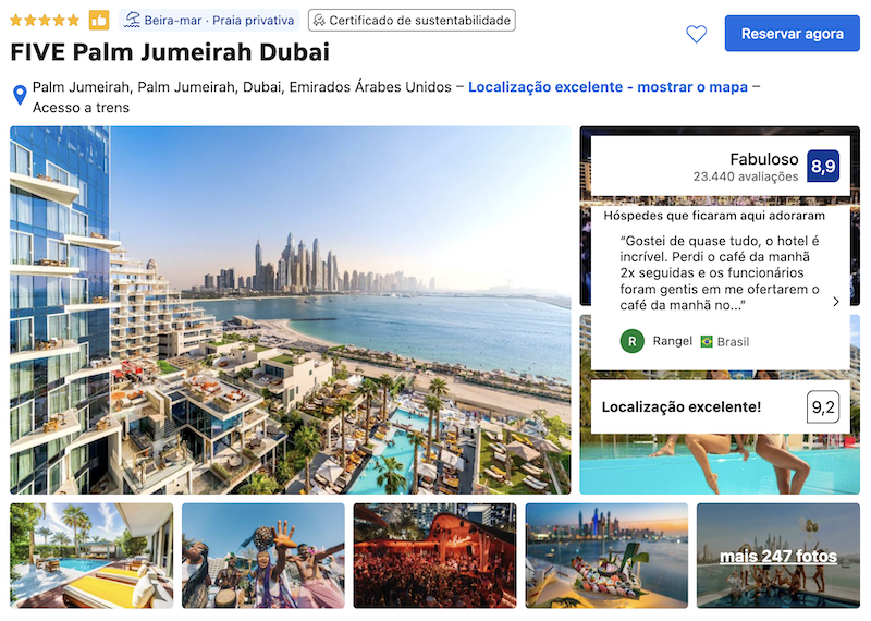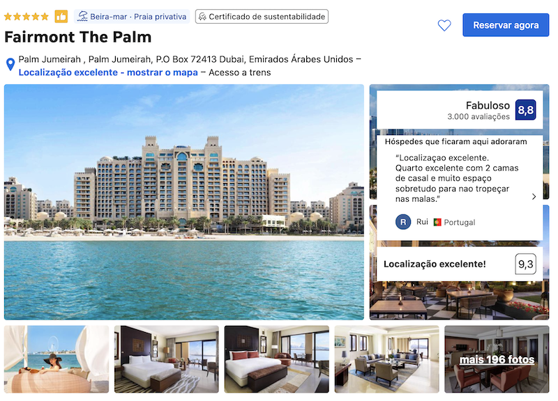 Em seguida, outra dica incrível de hospedagem em Dubai é o Fairmont The Palm, também na Palm Jumeirah e que apresenta uma estrutura elegante e completa. Isso porque oferece: praia privativa, várias piscinas, spa, academia e diversos restaurantes com culinária internacional. Além do mais, é perfeito para quem procura conforto e ficar em uma localização estratégica da ilha.
