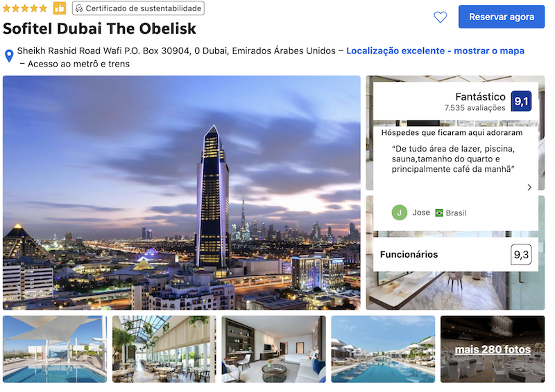 Para encerrar esta matéria de hotéis de luxo em Dubai, finalizamos com a dica do Sofitel Dubai The Obelisk. Um hotel que fica localizado próximo ao Wafi Mall e que combina luxo francês com a modernidade de Dubai. Quanto à estrutura, o hotel conta com piscina ao ar livre, spa, academia e vários restaurantes. Um destaque é a sua arquitetura imponente, que sobressai no skyline da cidade.