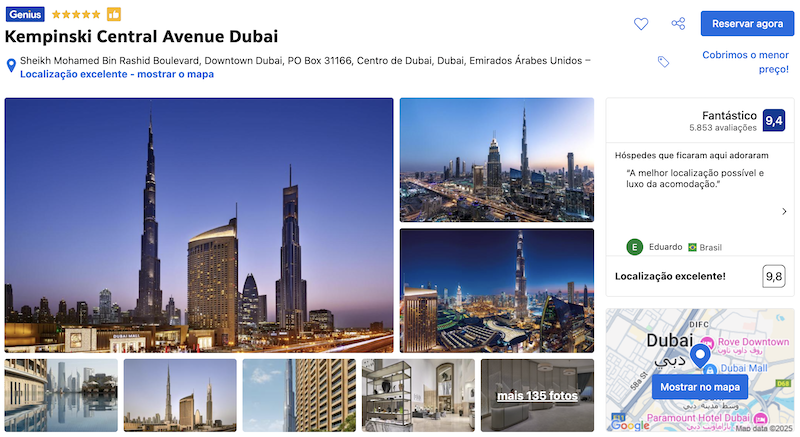 Em seguida, outro hotel incrível é o Kempinski Hotel & Residences Central Avenue. Trata-se de uma opção sofisticada e elegante em Downtown Dubai, a poucos minutos do Dubai Mall, do Burj Khalifa e de outras atrações famosas. Com design contemporâneo, o hotel oferece piscina ao ar livre, academia moderna, spa e opções gastronômicas refinadas.