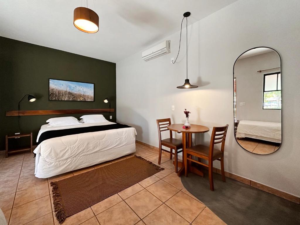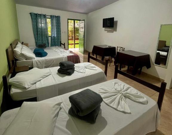 Os quartos são confortáveis e bem equipados com varanda, ar-condicionado, TV de tela plana e banheiro privativo. Ao acordar, você já ouve o som encantador do canto dos pássaros.