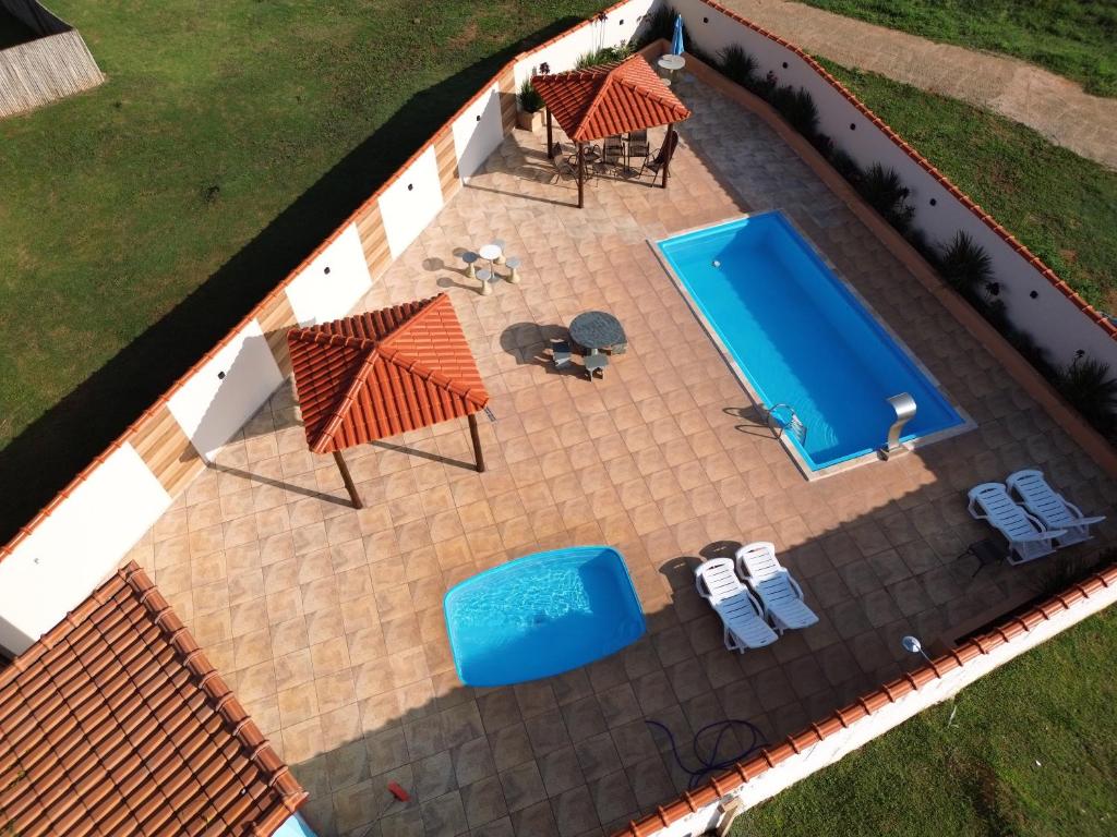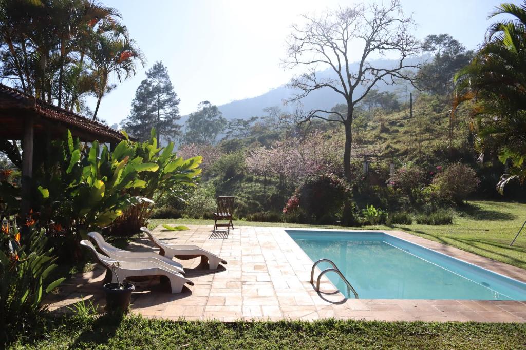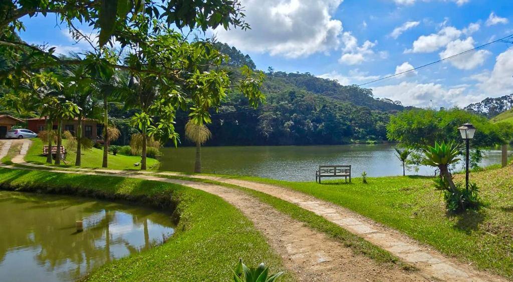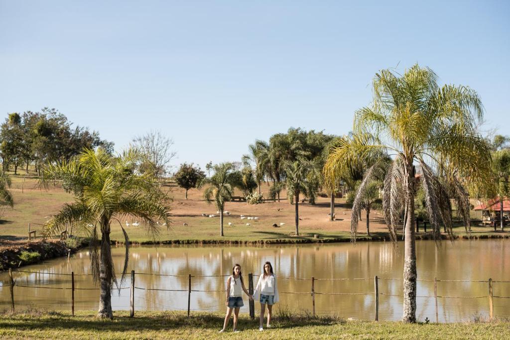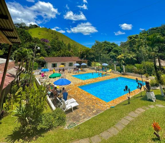 Cercada por muito verde, ela oferece um ambiente calmo e relaxante. A estrutura conta com piscina, restaurante, bar, parquinho infantil e até área para pescaria, além de uma mini fazenda.