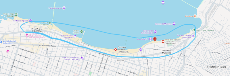 Mapa da Beira-Mar e onde ficam os hotéis: