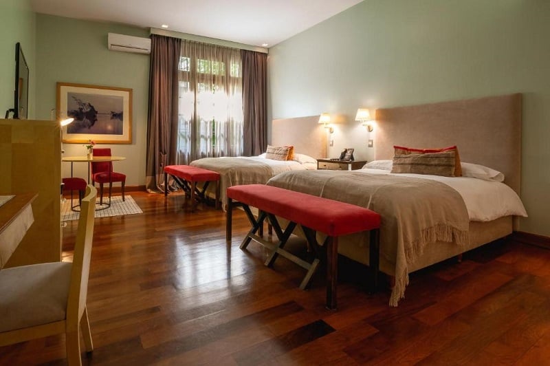 E, por falar em quartos, os deste hotel dispõem de: ar-condicionado, piso de madeira maçiça, móveis de madeira, Smart TV, cofre, banheiro privativo e roupões.