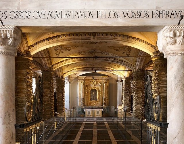 Outra Capela bastante conhecida e visitada fica em Évora e ocupa posição de destaque. O interior completamente revestido de crânios e ossos humanos provoca surpresa imediata, mas o local vai muito além do impacto visual.