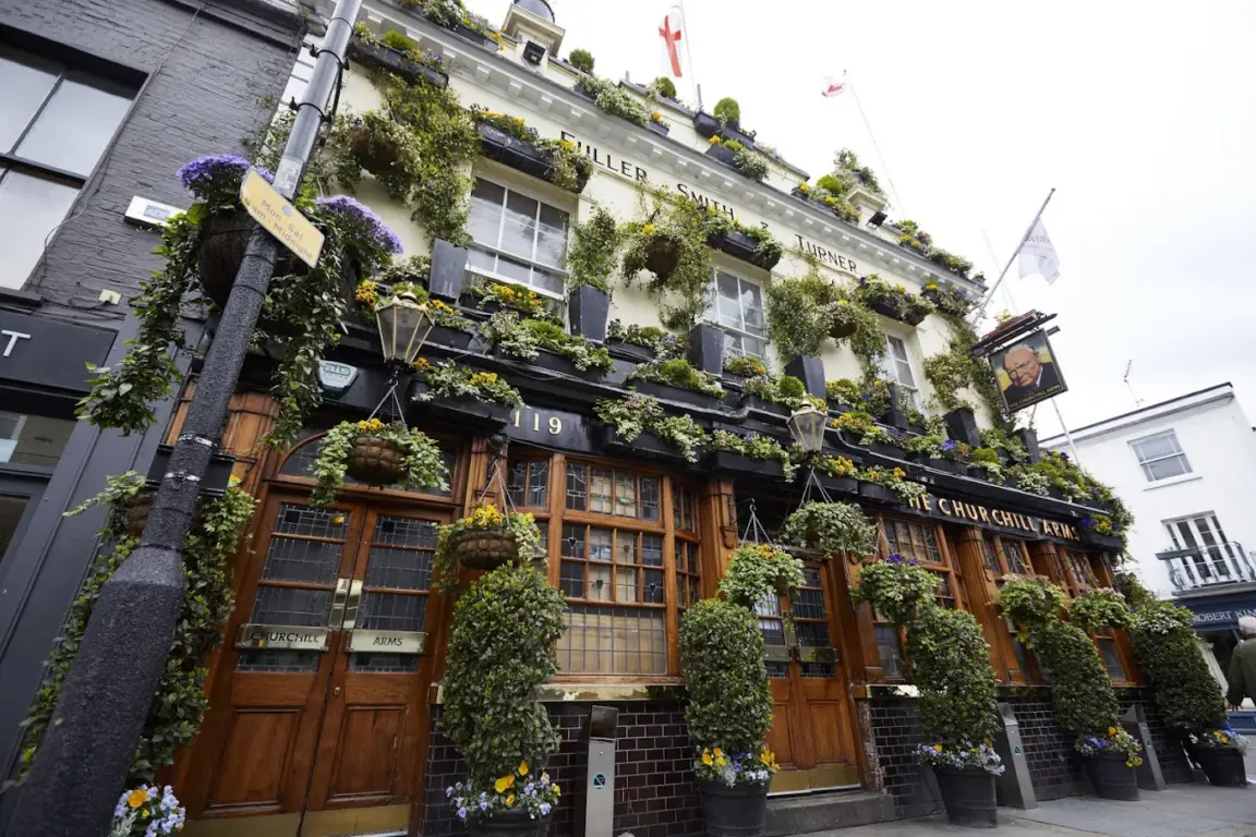 Quando você pensa em tradição e estilo inglês, o Churchill Arms já começa te surpreendendo antes mesmo de você entrar. A fachada florida é famosa em Londres e se torna quase um ponto turístico por si só.