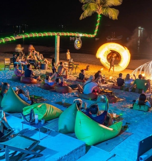 Um dos bares (beach club) mais emblemáticos de Koh Tao é o Fishbowl, um ponto de encontro clássico na ilha. Ele conta com música ao vivo, DJs, brincadeiras como beer pong e utilizam a areia como pista de dança! Por isso, se quiser tomar um drinque a qualquer hora e estar de frente para o mar, num ambiente animado, este é o local!