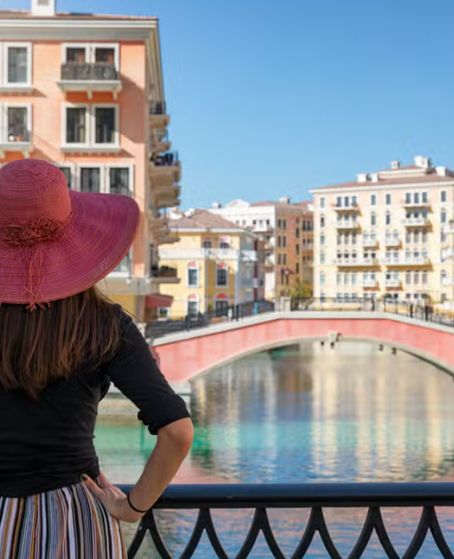 O destaque da ilha vai para o Qanat Quartier, uma área inspirada em Veneza, com canais, pontes e edifícios coloridos que rendem fotos lindas para guardar de recordação.