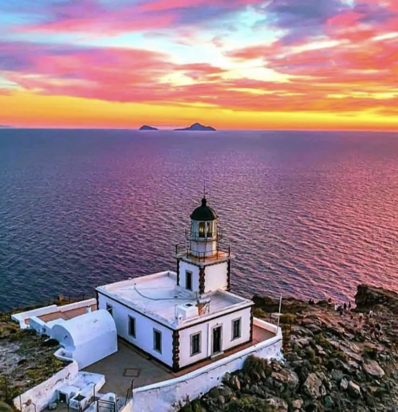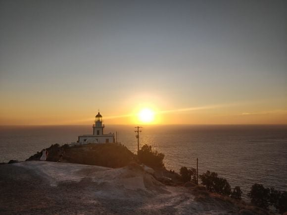 Outra opção menos óbvia e completamente diferente das demais é o farol de Akrotiri, localizado na parte sul/sudoeste da ilha, que tem vista aberta para o mar Egeu.