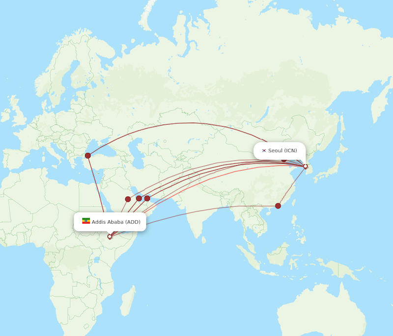 Rotas mais comuns até à Coreia do Sul saindo do Brasil são: