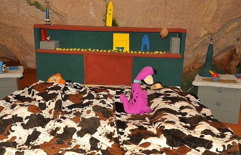 • Seguindo o passeio, você subirá algumas escadas até Bedrock City, um outro conjunto de grutas de onde se pode ver a vila de Fred Flintstone e a garagem com o RocDonalds.