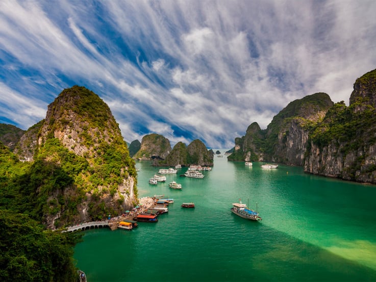 De Hanoi, a cerca de 170 km, fica a Baía de Halong, que é Patrimônio Mundial da UNESCO e um dos cartões-postais do país. A região é conhecida por suas formações calcárias que emergem do mar. O passeio mais comum é o cruzeiro com pernoite, que inclui visitas a cavernas, ilhas e passeios de caiaque.